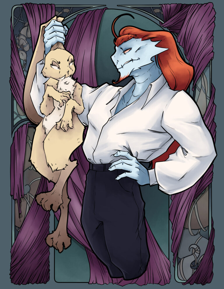 Ich spezialisiere mich auf anthropomorphe Tiere, was man unter anderem aus meinem Comicprojekt “Of Hares and Snakes” und Illustrationen entnehmen kann.